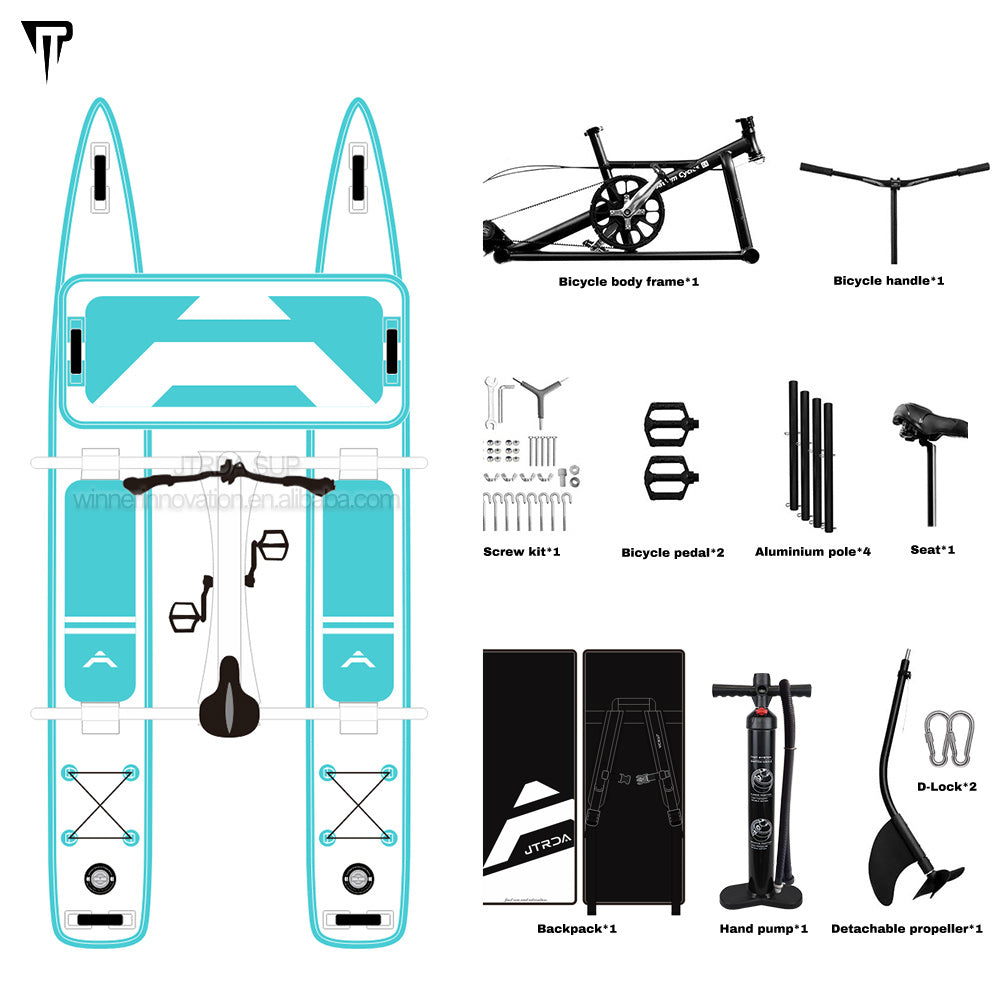 JTRDA充气水上脚踏自行车套装,适合1人或2人使用